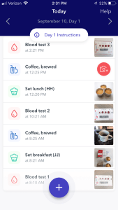 Overall, I think day 1 went pretty well. The meals were tolerable taste-wise and I haven’t felt overly hungry or uncomfortable in between. My biggest complaint is probably of the blood spot tests. My first test went fine; I filled each circle with blood easily. For both the post-breakfast and post-lunch tests though, I had to use a second, spare finger prick device each time to create a second cut on my finger to produce enough blood to fill the four squares. I’m unsure about why my blood flow was so poor for the second two tests, but I’ve got adhesive bandages on my left middle and index fingers, I can type just fine, and all will heal quickly! There is one day in between the two finger spot test days (a purposeful choice by the study team?), so I’ll be ready to do more blood spot tests when day 3 rolls around.